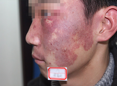 外科治疗:一般是采用将病损区皮肤磨去(就像水磨石地那样),或将病损区皮肤切除,较后植皮。这种治疗方法无疑会留下明显的瘢痕,治疗的结果看上去犹如脸上“打了一个补丁”一样。